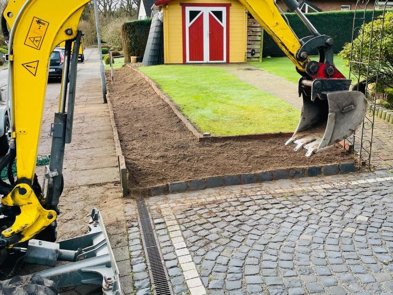 Saubere Erdarbeiten sind die Grundlage jeder Außenanlage. Wir führen Erd- und Baggerarbeiten präzise aus und bereiten Flächen technisch korrekt für weitere Gewerke vor.